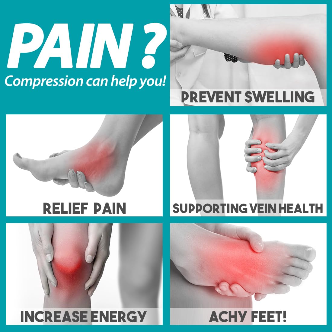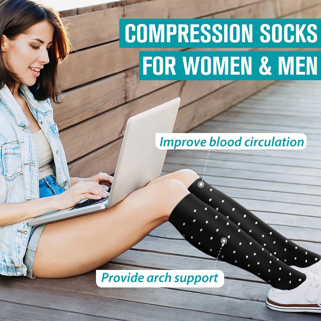 - UPGRADE YOUR COMPRESSION SOCKS DRAWER! - With all the tasks of work and family (and of life itself!) we may forget to pay attention to and maintain the health of our legs. Our compression socks are designed to help increase circulation, improve leg and foot comfort, and reduce soreness and swelling, increase energy, All day comfort.Great for long periods of sitting or standing, endurance sports, flying and travel, post-workout recovery, pregnancy, and spider & varicose veins.