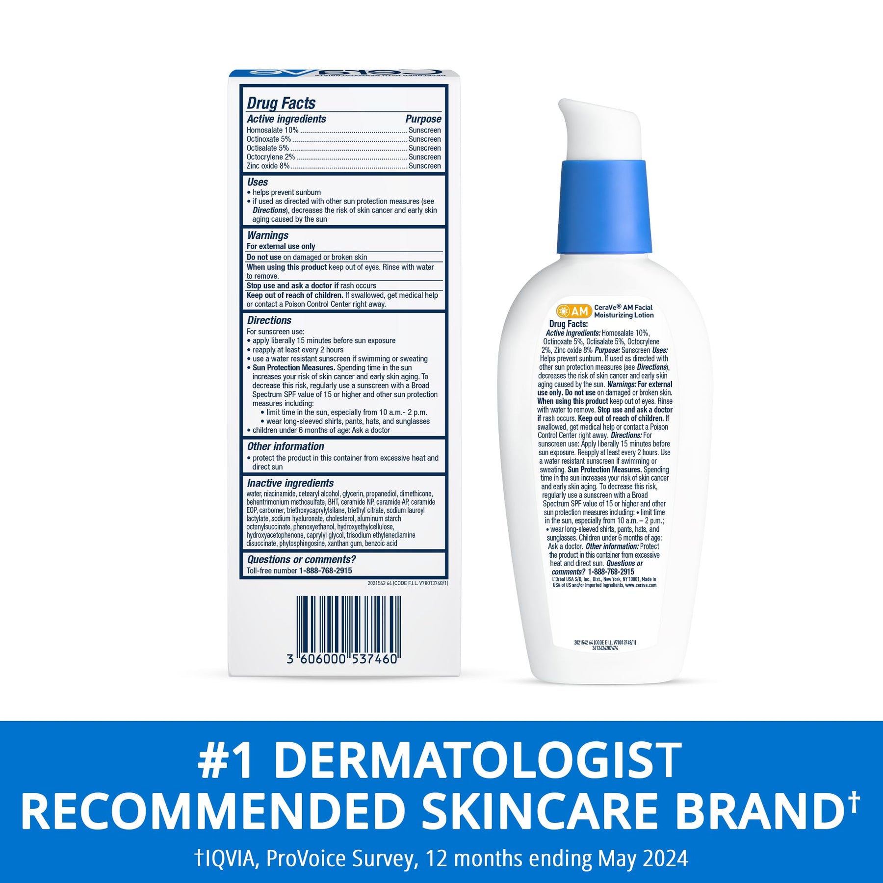 Details: Developed with dermatologists, CeraVe AM Facial Moisturizing Lotion with Sunscreen moisturizes throughout the day and helps to restore the protective skin barrier. This sunscreen lotion is Formulated with broad spectrum SPF 30 sunscreen for daily UV protection, protecting your skin from damaging UVA and UVB rays. This non-comedogenic moisturizer with SPF 30 spreads easily without leaving a chalky residue. •Suitable for all skin types •Oil-free •Non-comedogenic •Fragrance-free •Gentle, non-irritating formula •Recommended by The Skin Cancer Foundation Key Ingredients: •InVisibleZinc Technology: Provides Broad Spectrum SPF 30 sunscreen •MVE Technology: This patented delivery system continually releases moisturizing ingredients for 24-hour hydration •Ceramides: Essential for healthy skin, ceramides help restore and maintain the skin’s natural barrier •Hyaluronic Acid: This ingredient attracts hydration to the skin’s surface and helps the skin retain moisture •Niacinamide: Helps calm the skin